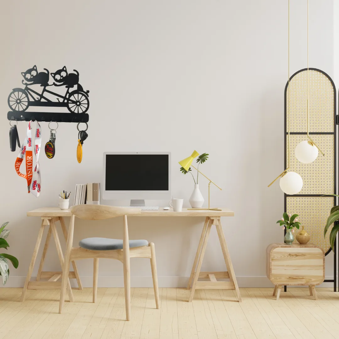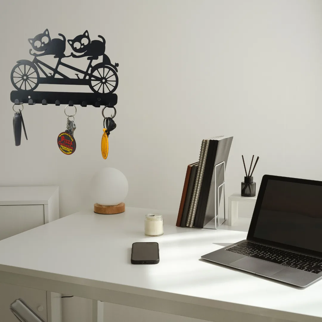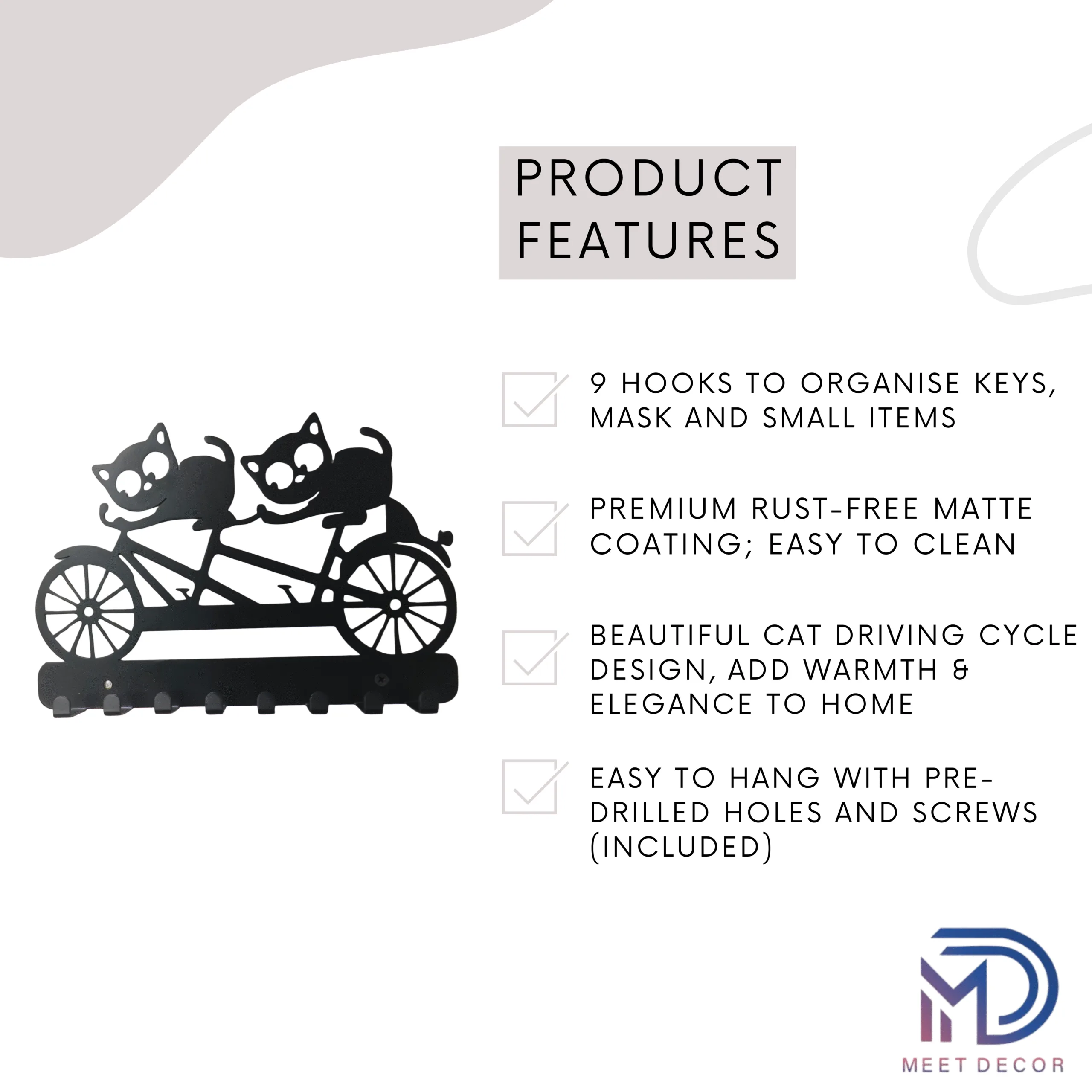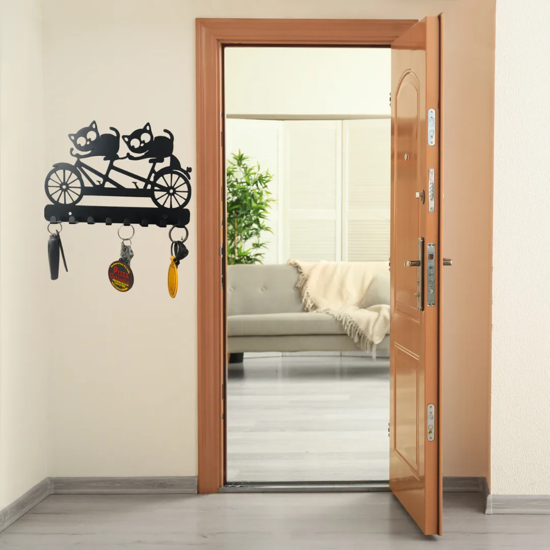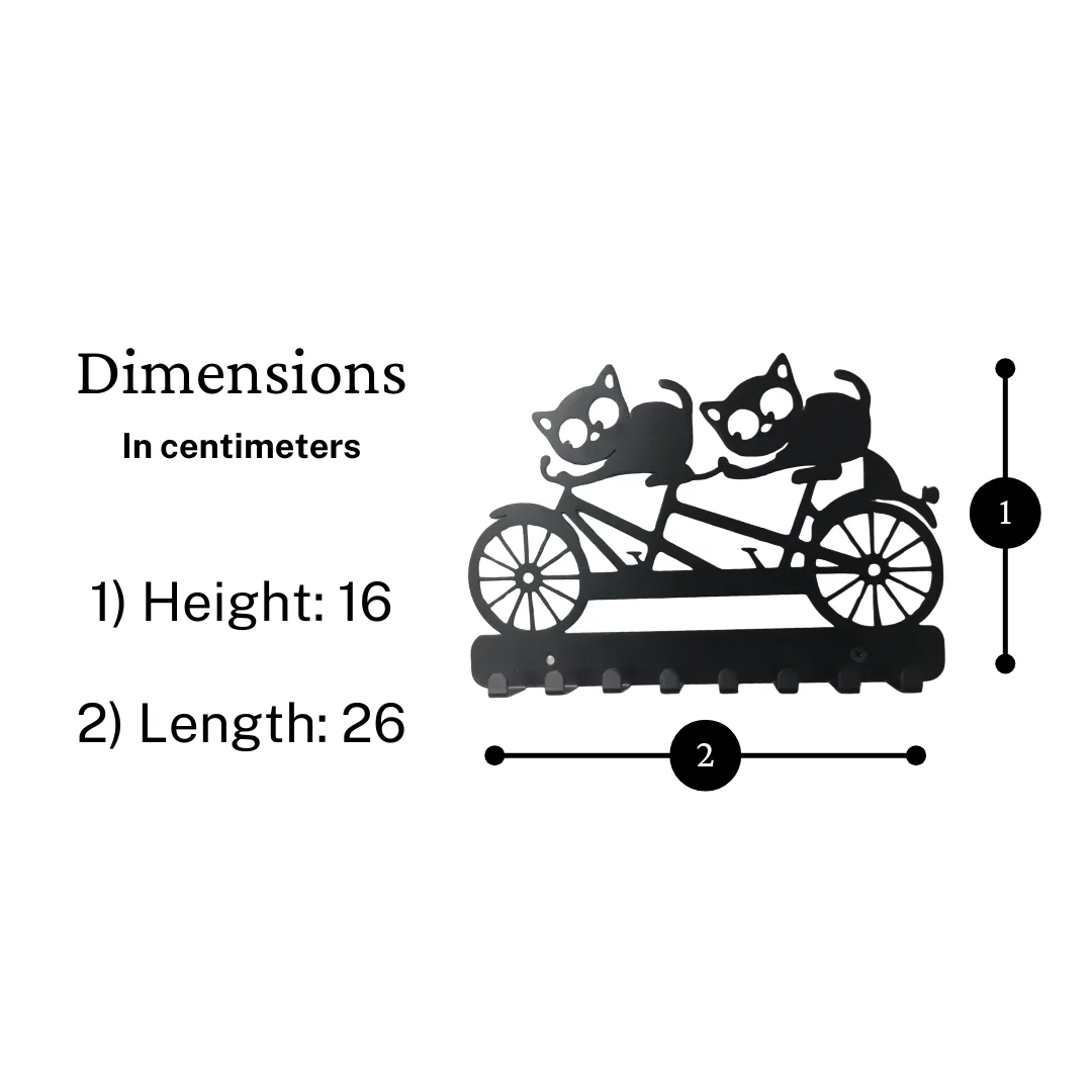 Add charm and functionality to your entryway or workspace with the Metal Cycling Cat Design Wall Key Holder! Its 27cm x 16cm frame offers 9 sturdy hooks, ideal for homes and offices needing extra capacity. Made from rust-resistant, powder-coated iron, it’s built for lasting performance and easy maintenance. The delightful cats-on-bicycle motif serves as both a decorative accent and conversation starter. Hang it near the entrance for quick access to keys and accessories or use it in bedrooms, kitchens, or workplaces for extra organization. The secured mounting ensures stability, and the smooth, safe hooks won’t scratch your keys or walls. Whether you’re searching for practicality, whimsical décor, or an unforgettable gift for cat enthusiasts, this key holder meets every need. Make your walls memorable—order now and combine playful style with smart organization! write key feature in bullet points not in table write key feature in bullet points not in table Certainly! Here are the key features in easy-to-read bullet points for the Metal Cycling Cat Design Key Holder (9 Hooks, 27cm x 16cm): Premium Metal Construction: Built from high-quality, powder-coated iron for strong durability and resistance to rust. Spacious Dimensions: Measures 27cm (length) x 16cm (height) – large enough for home entryways, offices, and shared spaces. 9 Sturdy Hooks: Offers ample space to hang multiple keys, keychains, car remotes, lanyards, and small accessories. Unique Cycling Cat Design: Playful and artistic cat-on-bicycle silhouette makes your wall stand out. Versatile Usage: Perfect organizer for keys, masks, ID cards, jewelry, or other lightweight essentials. Easy Installation: Comes with pre-drilled holes and mounting hardware for quick and secure wall setup. Low Maintenance: Easy to clean—simply wipe with a dry or slightly damp cloth. Great Gift Choice: Ideal for housewarming, birthdays, festive occasions, or as a cheerful gift for cat lovers. Safe & Smooth Hooks: Hooks are designed to prevent damage or scratches to your keys and accessories. Premium Metal Build: Crafted from high-quality powder-coated iron for durability and rust resistance. Generous Size: 27cm (L) x 16cm (H)—spacious enough for home, office, or shared spaces. 9 Sturdy Hooks: Easily organize multiple keys, car remotes, keychains, or small accessories. Unique Cycling Cat Design: Adds a fun, artistic statement to any wall. Versatile Usage: Hang keys, ID cards, masks, jewelry, or other lightweight essentials. Easy Installation: Pre-drilled holes and mounting hardware included for quick wall setup. Low Maintenance: Wipe with a dry or slightly damp cloth to keep it sparkling and dust-free. Great Gift Choice: Perfect for housewarming, birthdays, pet lovers, or festive gifting.